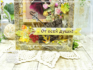 В мою композицию отлично вписалась вырубка ножами: флажок "От всей души!", цветок "Кудрявый шафран", "Россинки" и "Жемчужные нити".