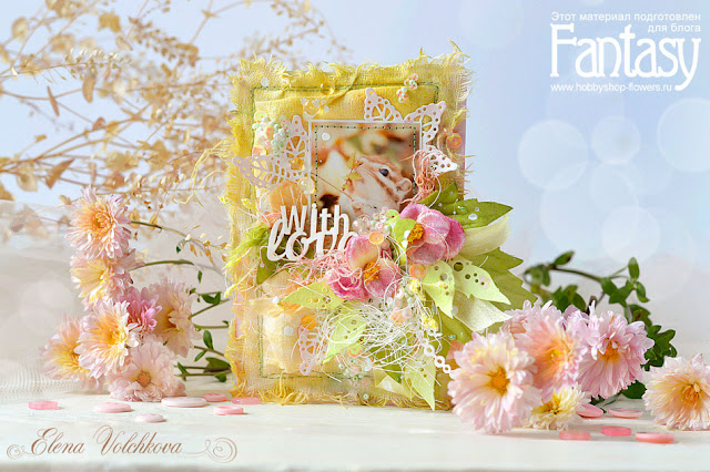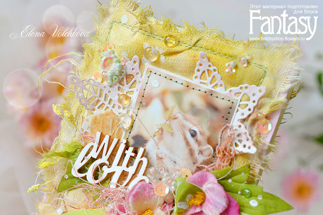А еще шебби-ленты, бархатные анютины глазки от Petallo, чипборд ScrapBox, сизаль и много бусинок и пайеток.