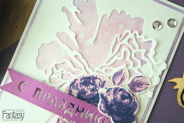 В работе использовала штамп и нож от Altenew Vintage Roses , distress ink, пайетки, спреи, акварельную бумагу и наши прекрасные ножи от Fantasy: "С Праздником" и "Фантазия".