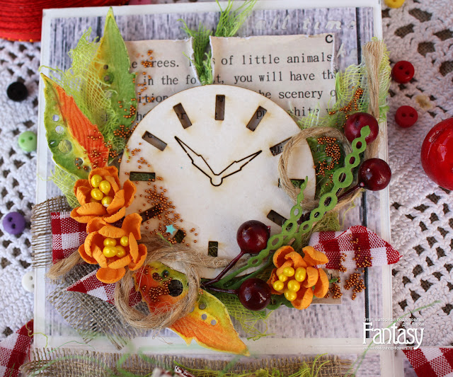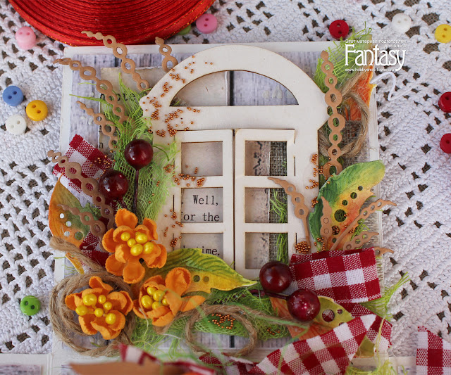 Ну и как изобразить весь этот уют без вырубки? Конечно же, никак! Мне очень помогли ножи для вырубки от FANTASY: листья "Воздушные", "Лисичкин хвост", "Жемчужные нити и тычинки для цветов", "Россинки".