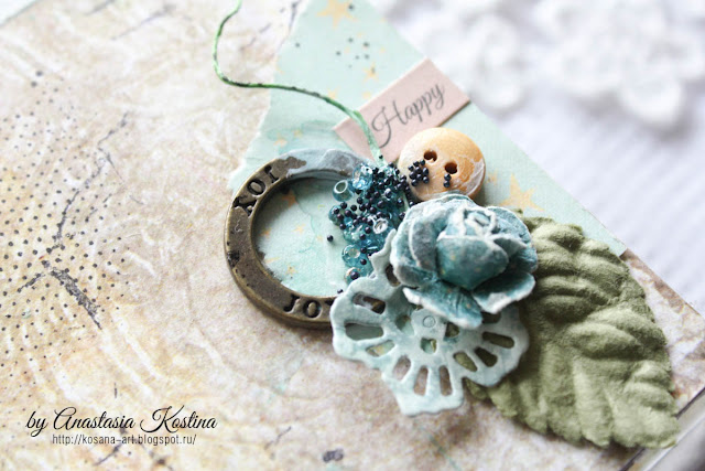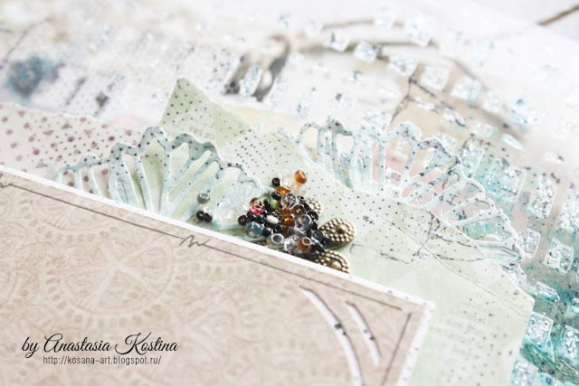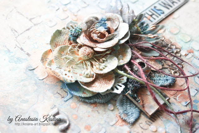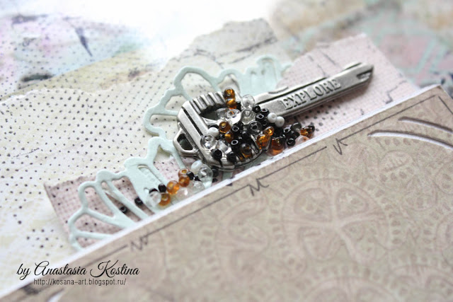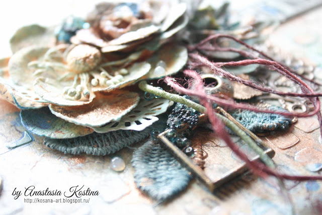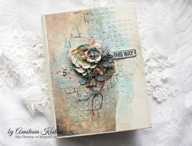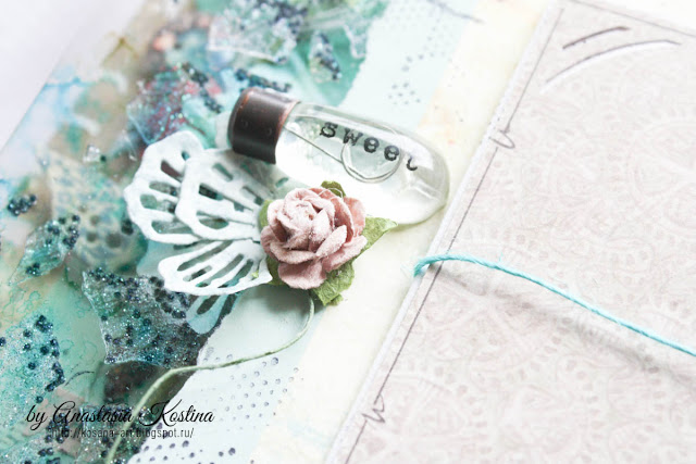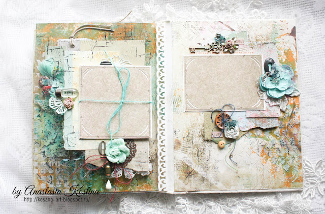 Покажу вам микс-медийный альбом. Кто хоть немного следит за моим творчеством, тот уже заметил, что таких работ у меня практически нет. А сегодня я вас удивлю))). Начинала я этот альбомчик на живом мастер-классе Лены Моргун, и лежал он у меня недоделанный почти 2 года... Видимо пришло его время. Добавила в альбом дополнительный разворот, сделала переплет, хотя предполагался он на кольцах и вуаля... готово!1 разворот: