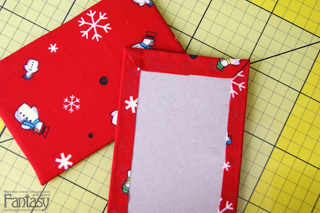 Начнем с того что подготовим основу для наших открыток. Открытка размером 10х15. Я вырезаю из переплетного картона две заготовки 10х15 и две из флиса того же размера. Ткань отрезаю с запасом по 2 см с каждой стороны.