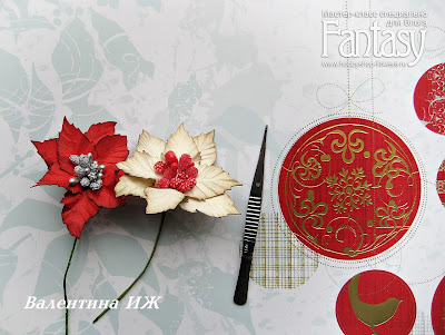 В инете много разных МК по созданию цветка Пуансеттия. Технология почти у всех одинаковая. Но сегодня я вам показала, как можно такой цветок сделать с помощью ножей фирмы Fantasy .