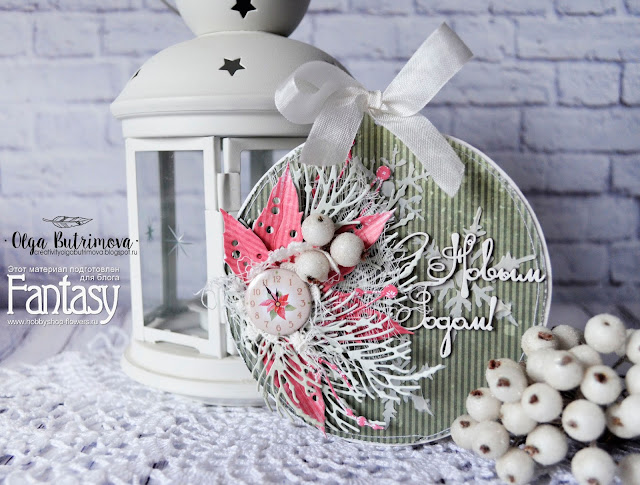 В работе использовала коллекцию бумагии фишки "CHRISTMAS STORY" от Bee Shabby, шебби-ленты, ножи для вырубки Fantasy "Сосна + нити 1", листья "Огненного цветка".