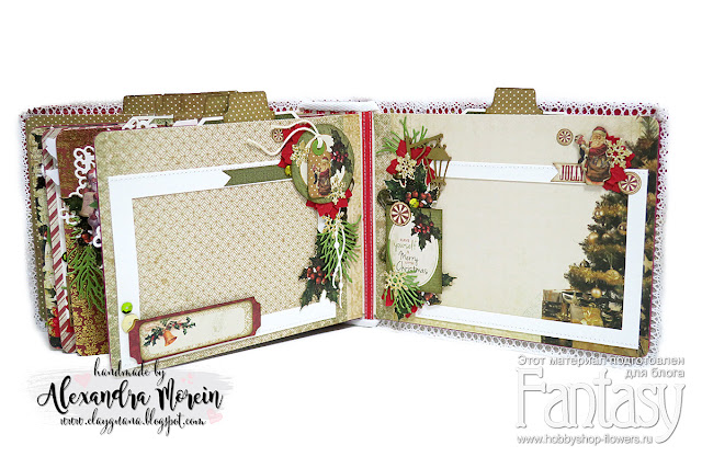 В альбоме я использовала бумагу от Kaisercraft, коллеция Yuletide, а также много ножей от нашего любимого магазина Fantasy: