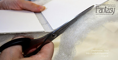 7. Остатки ненужного синтепона обрезаем по краю картона.