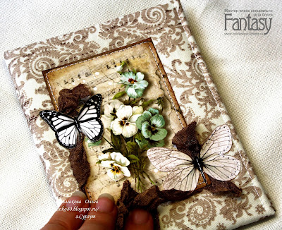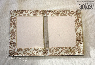 14. А теперь приклеиваем наш кусок ткани к серединке обложки.