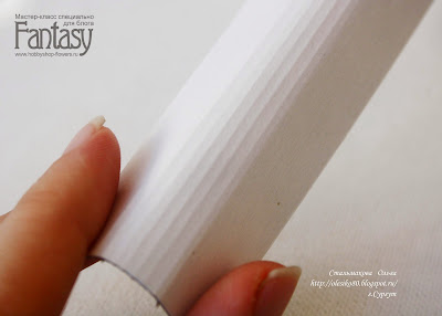 2. Теперь беру тонкий картон и делаю вертикальные надрезы в виде тонких полосок тупым концом ножа - для того, чтобы наша серединка легко могла сгибаться.