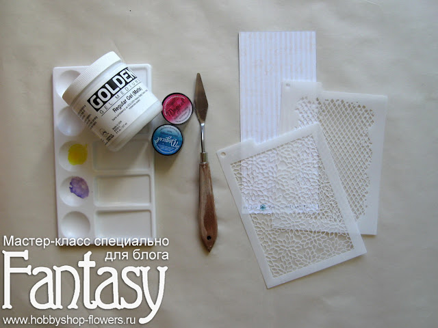 с помощью трафаретов и гель-медиума, подкрашенного красками.