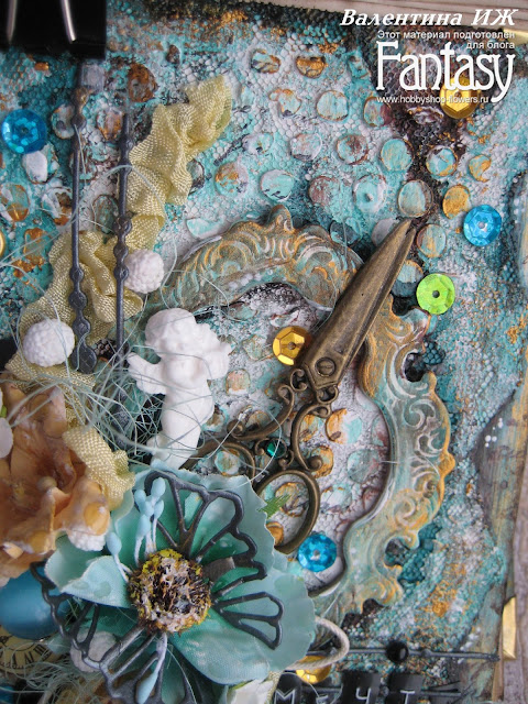 В работе использовала грунт, пасты и краски.