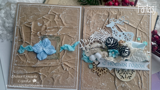 Здравствуйте, дорогие читатели! Сегодня с Вами я - Евгения Кузнецова ( EvgeniKa) и мое вдохновение для вас - открытка с оленем и мятым фоном в теплых крафтово-голубых тонах с обилием деревянного и природного декора.
