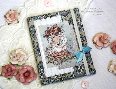Как вы заметили, я решила сделать обложку без объёмности, чтобы весь взгляд падал на картинку (уж очень она мне понравилась!), а голубой бантик на резиночки для эффектности, но и подчеркнуть ткань...))
